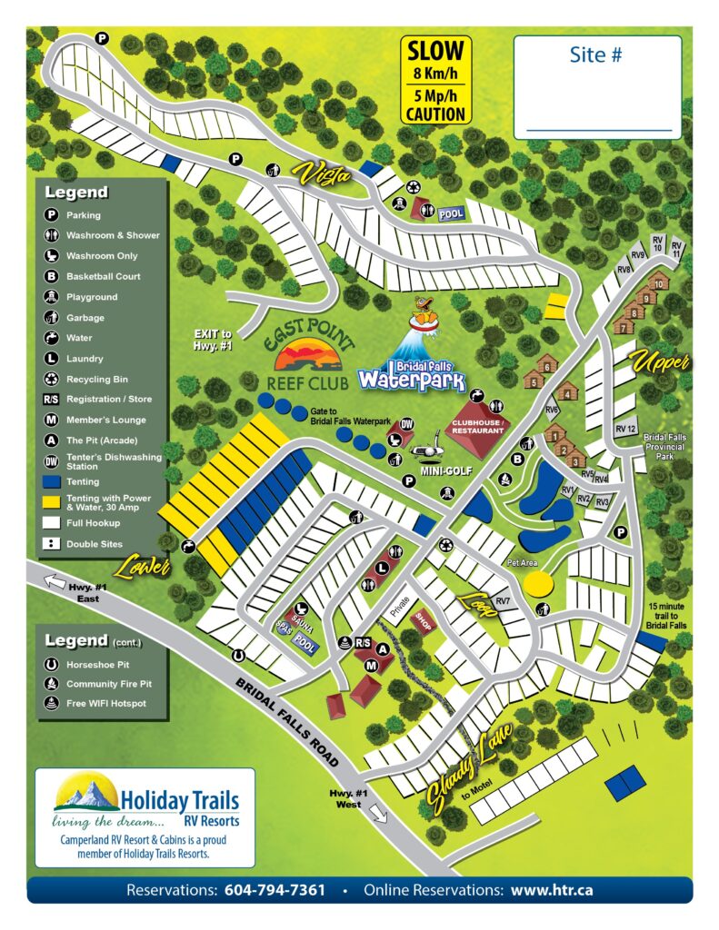 Camperland isn’t just about comfortable accommodations. We’re located next to the thrilling Bridal Falls Waterpark and just a short walk from the breathtaking Bridal Veil Falls Provincial Park. Explore numerous hiking trails or enjoy a family day out at the Bridal Falls Waterpark.