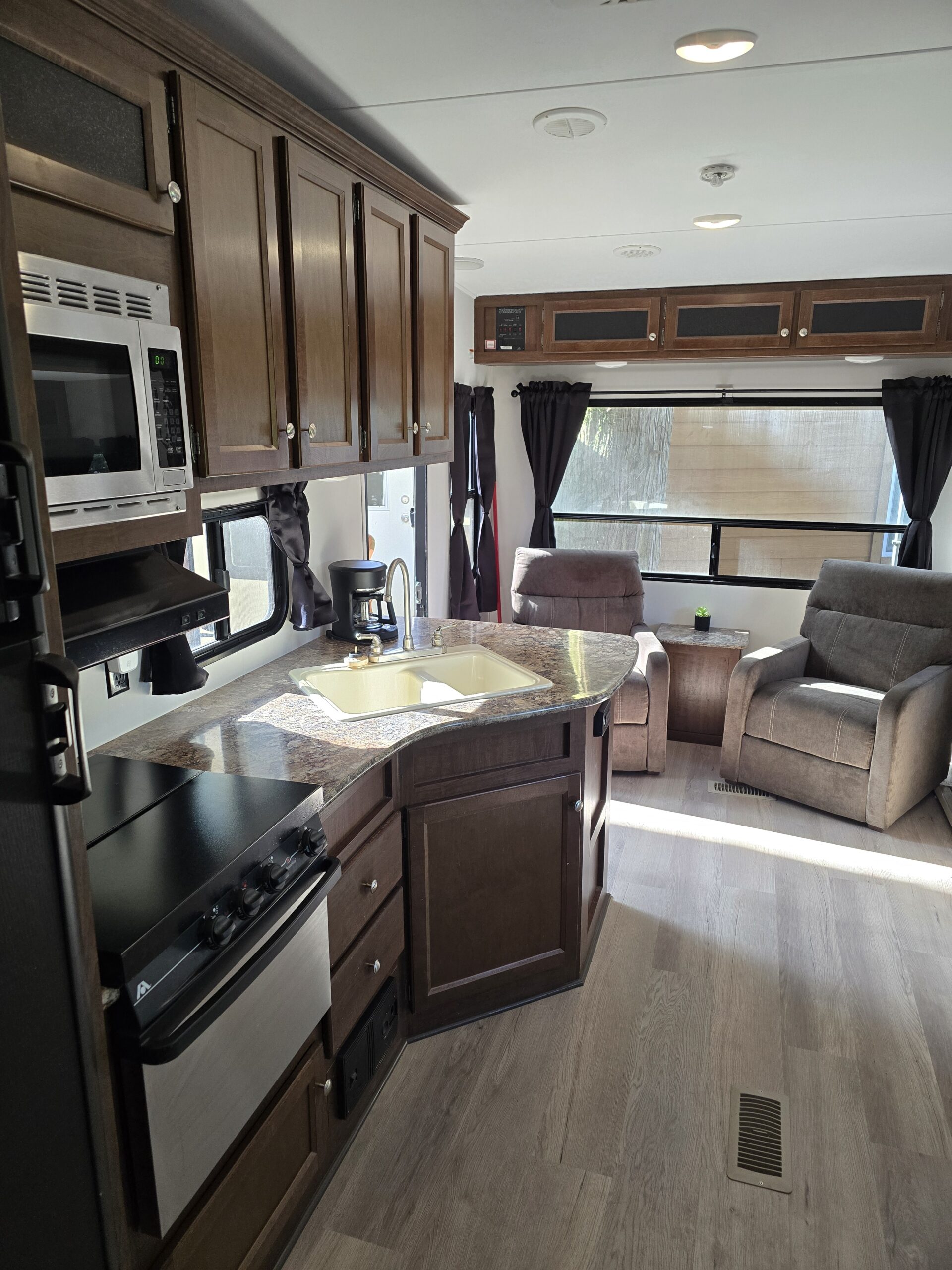 This unit is a premium unit, and comes equipped with an outdoor kitchen (fridge, stove), electric awning, and fireplaces